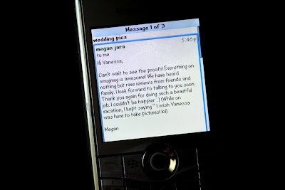 Here are two great e-mails from two of my recent brides, Jaime & Megan, that actually made me laugh out loud when I read them! Haha, I’m glad that brides think of me on their honeymoons even.![]()