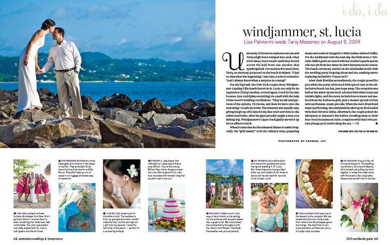 I’m so excited to say that I have been published in Destination Weddings and Honeymoons Magazine for the TJ and Lisa’s wedding that I photographed in St. Lucia over the summer! Thanks to a personal recommendation by friend and photographer (of my wedding - 12 days to go!!) Tomas Flint and of course Diane Rice who chose them.![]()