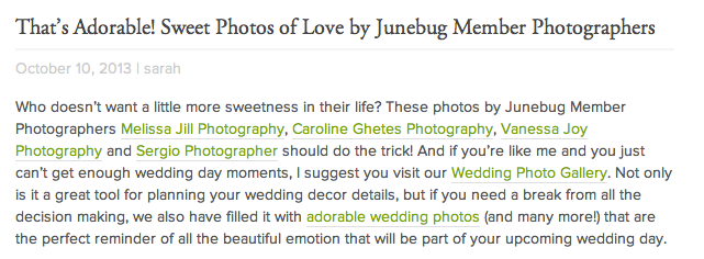 Junebugs Weddings featured one of my photos from Laura and Jon’s wedding! So beautiful.